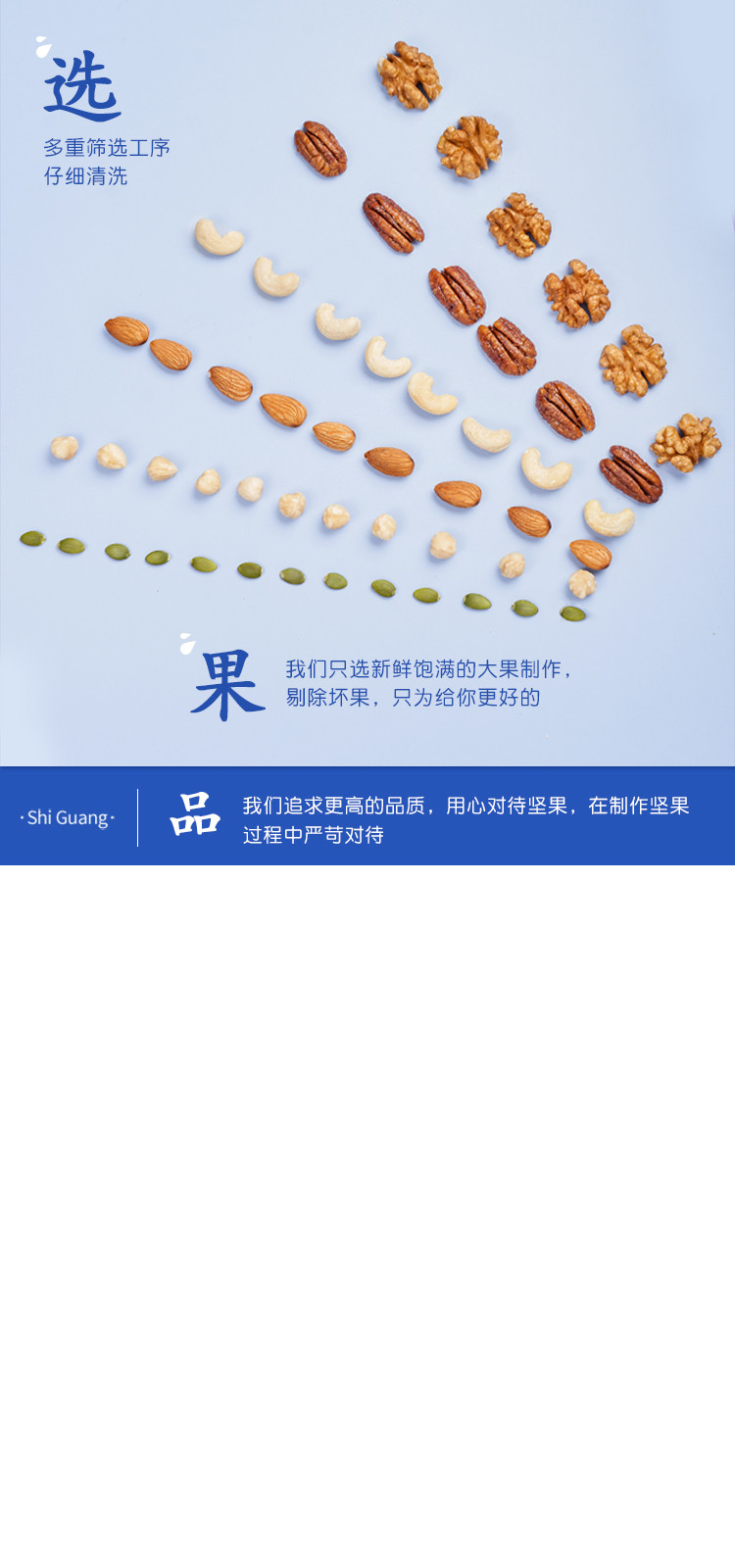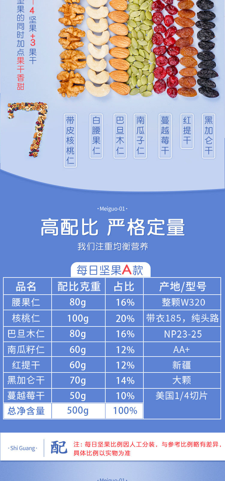 国产进口: 国产 包装形式: 袋装 保质期.: 180天 保质期: 180 口味: 原味 是否去壳: 是 保质期(天): 180 商品卖点: 每日坚果新鲜好货 商品款号: A款混合果仁500g 生产日期: 2022-05-14及以后 商品编码: COLOR7种混合果仁