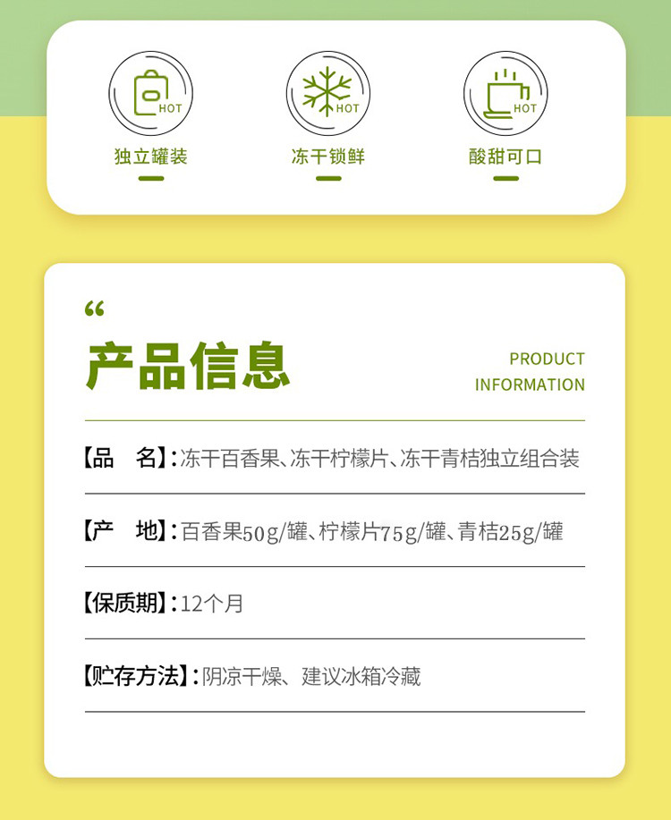 类型: 花果果粒茶 包装形式: 瓶装 国产进口: 国产 保质期.: 365天(1年) 保质期: 安徽亳州 产地: 安徽亳州 保质期(天): 365 商品款号: 20220514-2 生产日期: 2022-05-01及以后 商品编码: COLOR金桔百香果茶3罐装