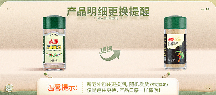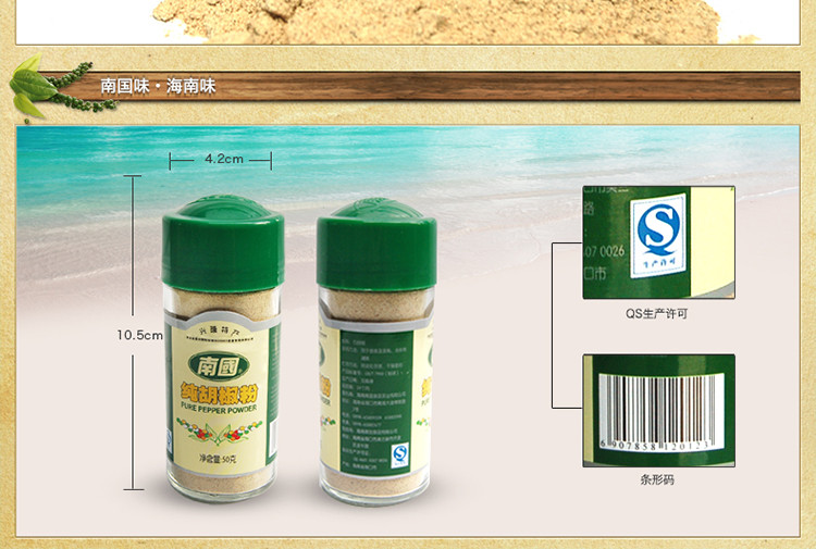 分类: 胡椒粉 烹饪方法: 炒菜,凉拌,烧烤 包装形式: 瓶装 国产进口: 国产 储存条件: 常温 保质期.: 730天(2年) 保质期: 730天 不适用人群/注意事项: 无 产地: 海南 重量(g): 100 规格: 50g*2 保质期(天): 730 商品款号: ZH00141 生产日期: 2021-09-09及以后 商品编码: COLOR银色